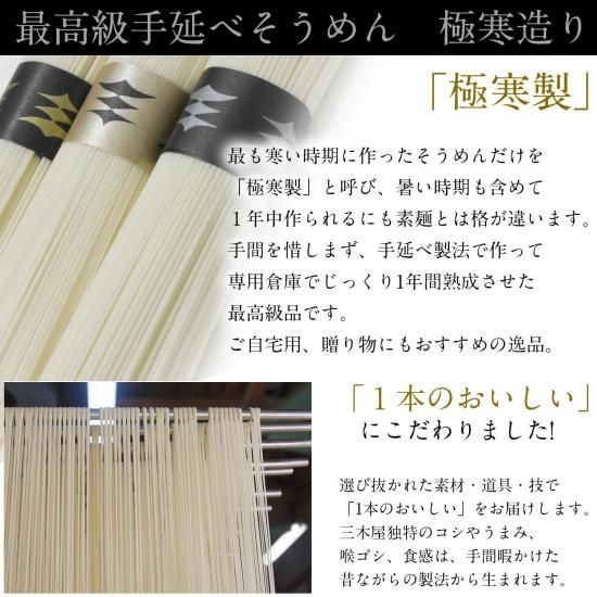 三木屋の人気商品「食べる楽しさ」のお手伝いをする極上手延べ麺を揃えました。