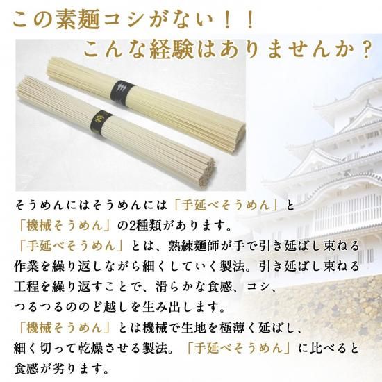 下さい。手延べ一筋35年の上技手延べ麺師が詳しくご説明させて頂きます。