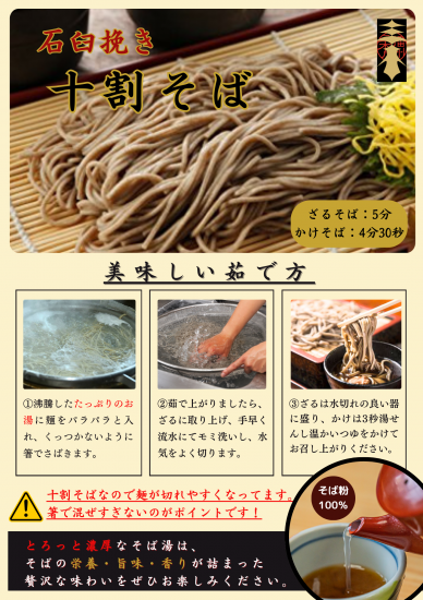 【4. 毎日の食卓にも取り入れやすい価格】十割そばは高価なイメージがありますが、より多くの方に楽しんでいただけるよう、製造工程の工夫によってコストダウンを実現しました。ぜひ、ご家庭で本格的な十割そばをお試しください。