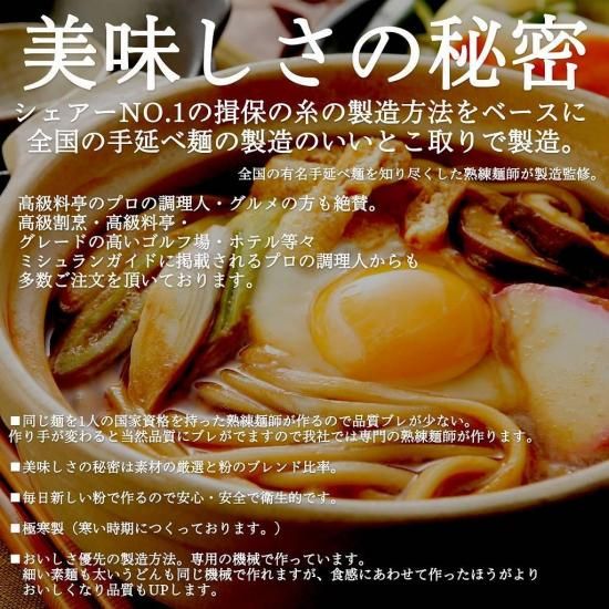 ぜひ一度、この手延べの熟練職人の技と数種類の小麦粉のブレンドによって生み出される絶品のうどんをご賞味ください。
