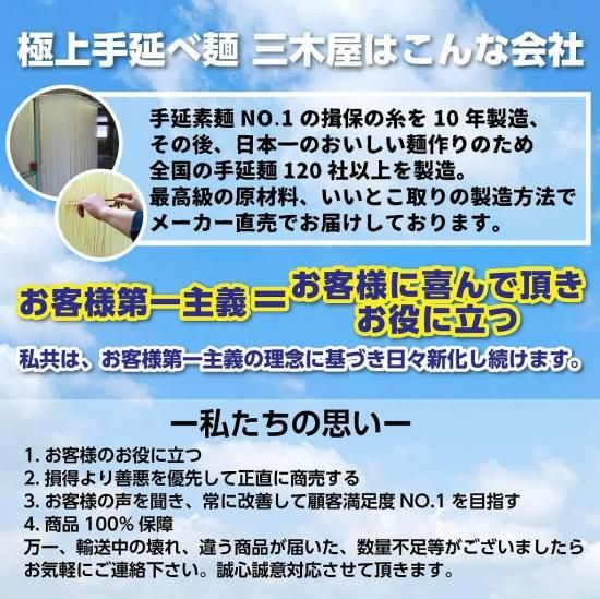 三木屋の人気商品「食べる楽しさ」のお手伝いをする極上手延べ麺を揃えました。